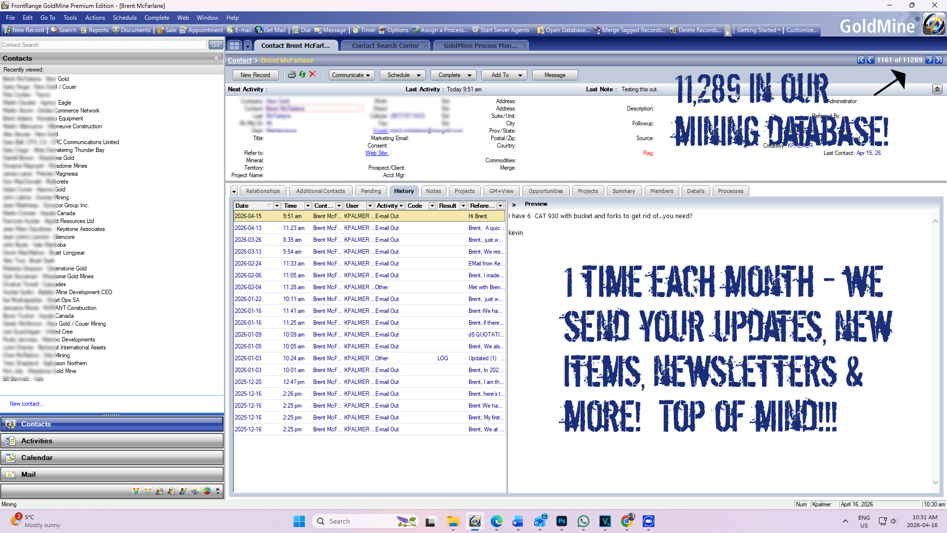 It’s proven that relationships built outlast any CRM or media programming and campaigns – we’ve been doing this same work for over 30 years in mining with long-established relationships across Canada and in parts of the USA.